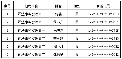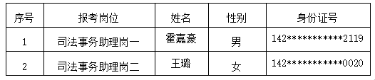 根據公司2025年8月28日發布的《忻州市定襄縣人民法院司法事務助理招聘公告》(項目編號:XFYZP-2025XZ066)要求,經過網上報名、資格審查、初試、面試、政審、考察、體檢等環節,現將擬錄用人員及儲備人員名單公示如下: